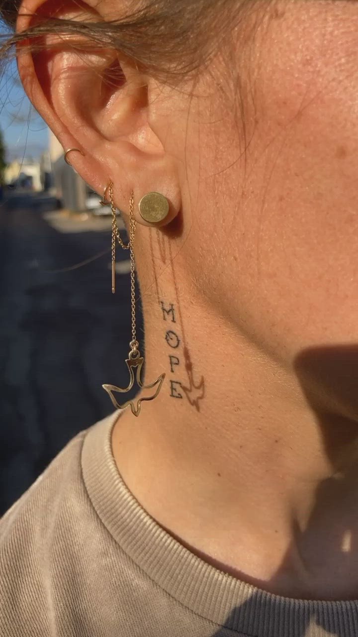 These beautiful dove threader earrings were inspired by our friend and artist, Corie Mattie also known as the LA Hope Dealer.